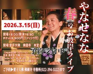 少しずつ、予約もはいってきております。ぜひ、皆さまお揃いで、心温まるお彼岸ライブにお越しくださいませ。